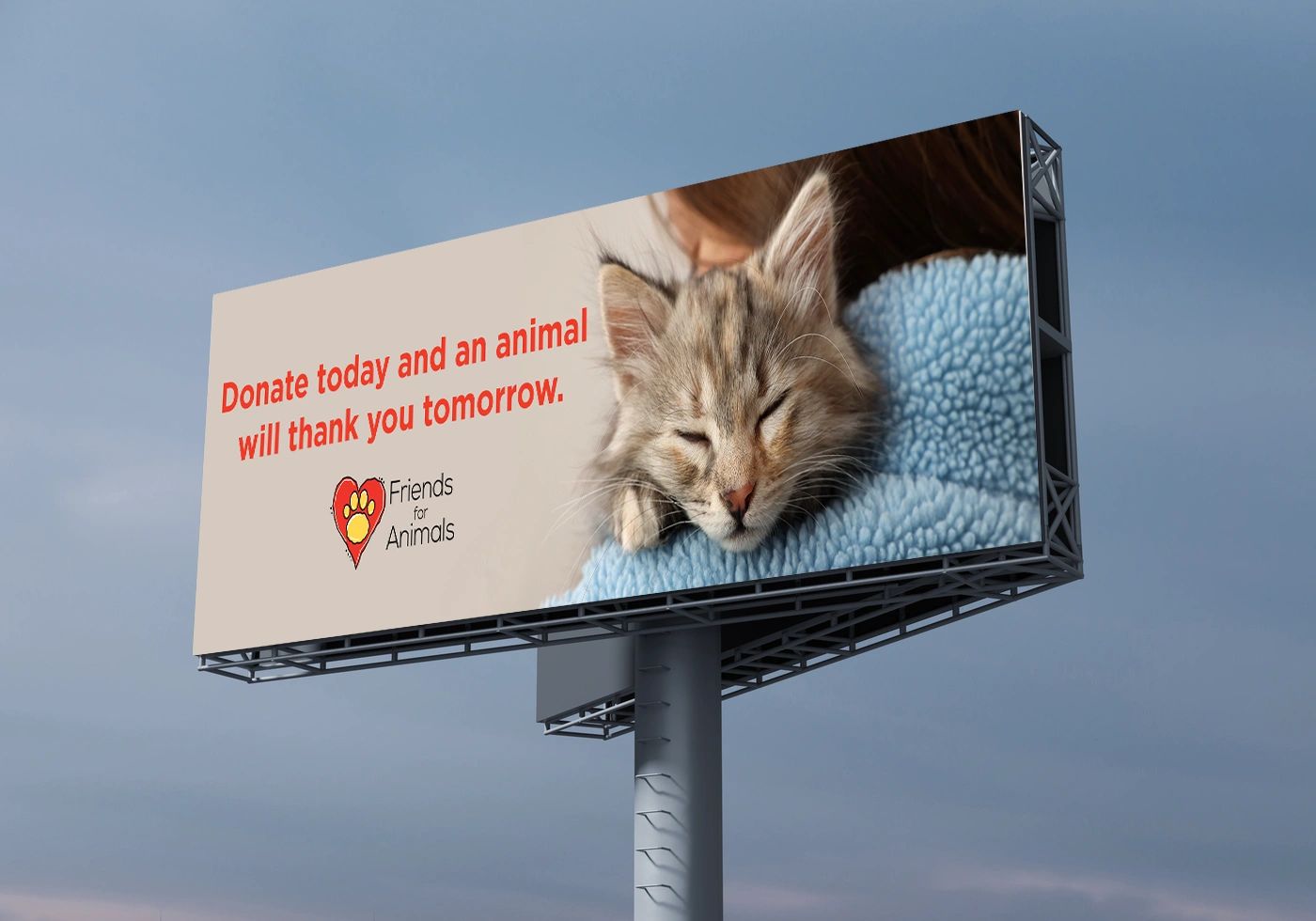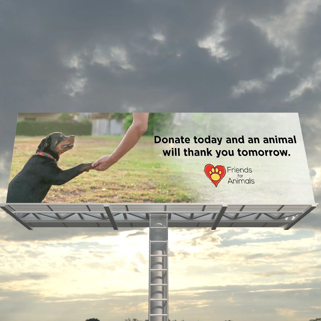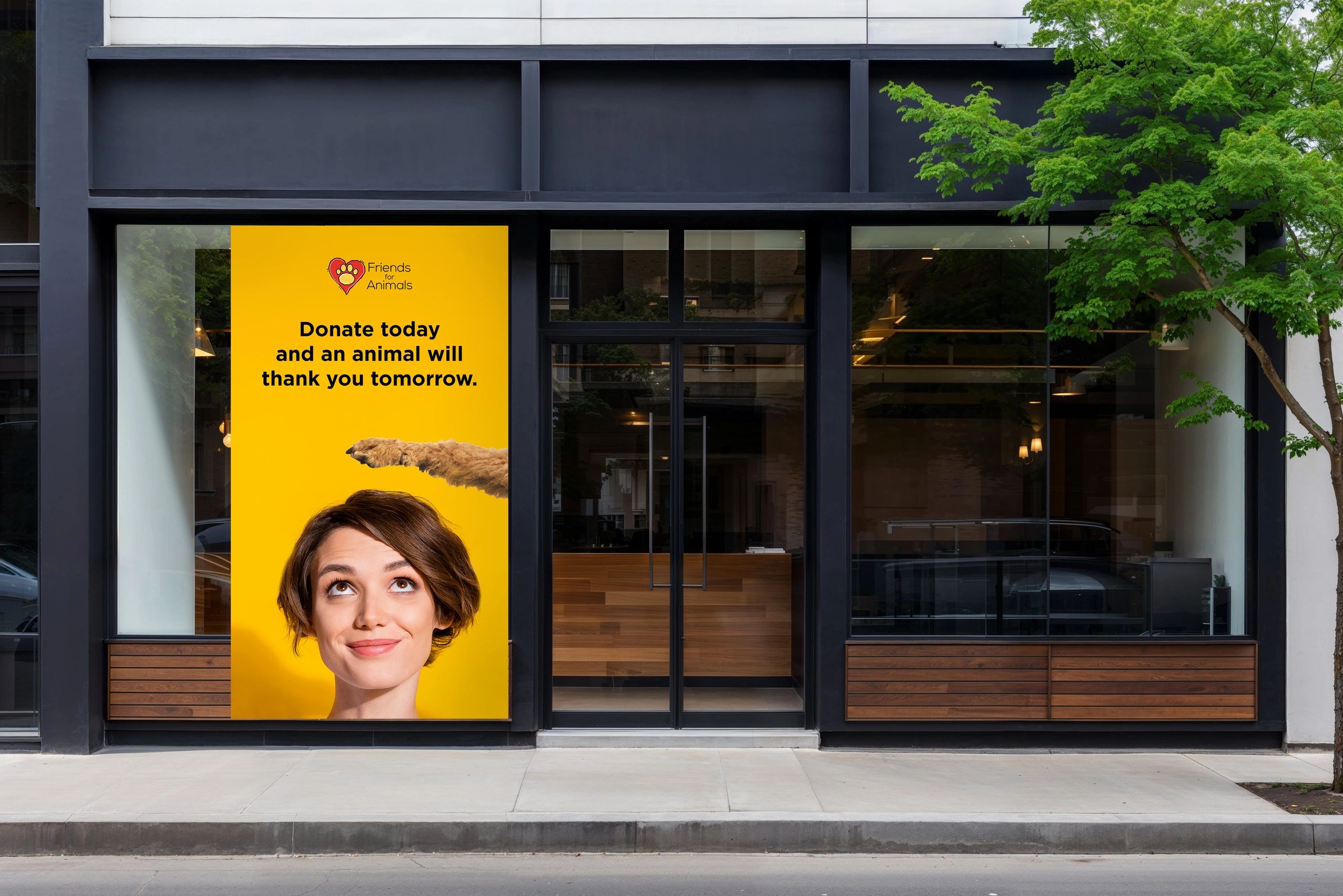 Friends for Animals came to us, they weren’t just asking for a campaign. They were asking for hope. So we poured our hearts into telling their stories. No stock photos. No hollow taglines. Just soulful eyes, scarred pasts, and the gentle bravery of animals still waiting for love. Every postcard, billboard, and email carried their voices out into the world. And the world answered. Donations surged. Adoption rates soared. And every animal featured in our campaign found a home.